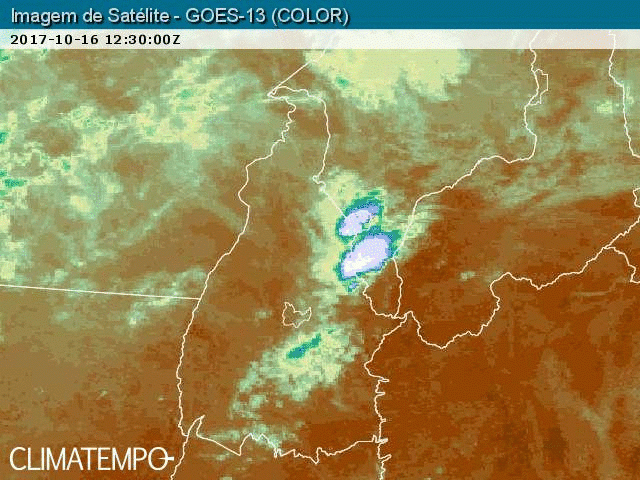Nas imagens de satélite, as manchas azuladas e vermelhas indicam as nuvens mais carregadas com potencial para chuva forte. O Instituto Nacional de Meteorologia registrou 41,0 mm sobre Colinas do do Tocantins entre 14 horas e e 15 horas segunda-feira, 16 de outubro. Marianópolis do Tocantins recebeu quase 46 mm de chuva entre 14 e 17 horas. Em Palmas choveu quase 5 mm entre meio-dia e 15 horas. Em Araguaína choveu 10,0 mm por volta das 13 horas.