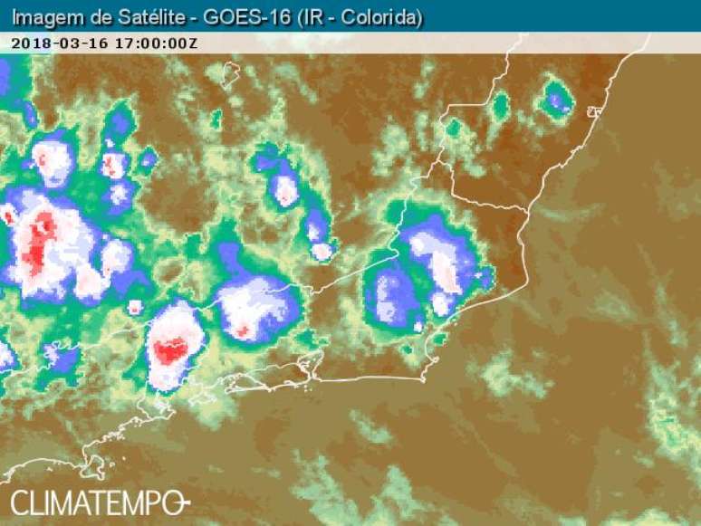 No decorrer da tarde, estas nuvens carregadas se espalham por todo o estado do Rio de Janeiro e provocam chuva forte com raios em muitos locais. Na cidade do Rio de Janeiro, as primeiras pancadas começam antes fim de tarde e também podem ser fortes.