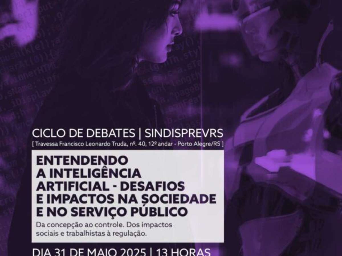 Nesse sábado (31), às 13h, o SindisprevRS dará início a um Ciclo de Palestras sobre Inteligência Artificial (IA). O evento, que será aberto para a população em geral, ocorrerá na sede do SindisprevRS (Travessa Leonardo Truda, nº 40 -12º andar) e terá transmissão pelo canal do YouTube do Sindicato (https://www.youtube.com/watch?v=avs4ZsAVJt8).