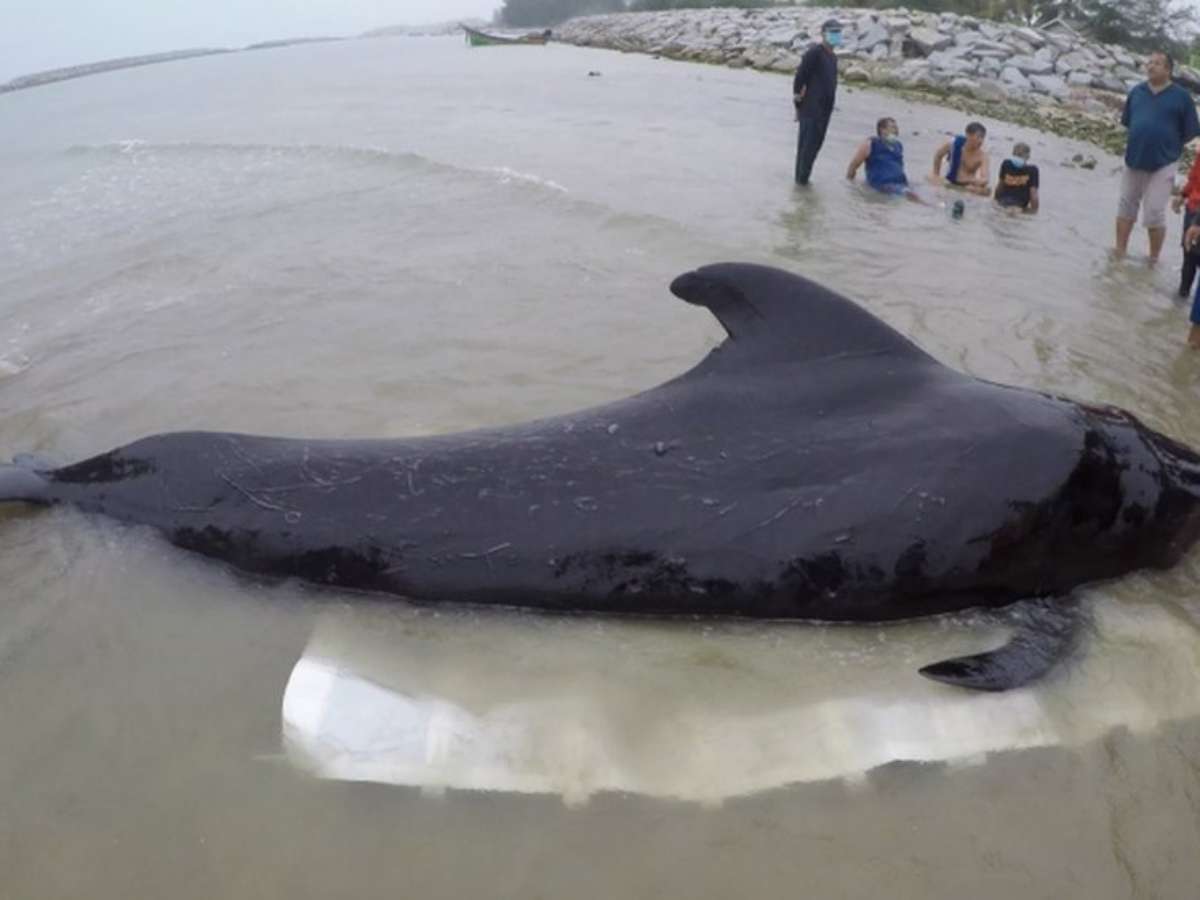 A baleia chegou a vomitar cinco sacolas durante uma tentativa de salvamento realizada por funcionários de conservação em um canal da província de Songkhla.