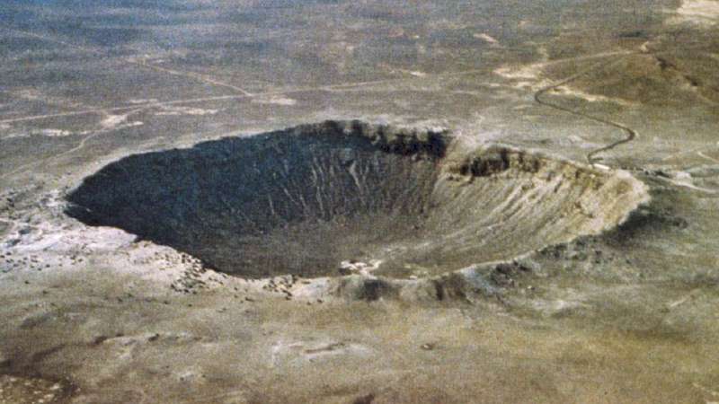 6) O asteroide que formou a cratera mais bem preservada - Arizona (EUA) A Cratera de Barringer, também conhecida como Cratera do Meteoro, data de 50 mil anos atrás, e está localizada ao norte do Arizona, EUA. Cientistas acreditam que ela tenha sido formada por um meteorito de aproximadamente 50 metros, que atingiu a Terra em uma velocidade de 45 mil km/h e produziu uma explosão de 10 megatons. A cratera possui 1,2 quilômetros de diâmetro e 200 metros de profundidade. A cratera de impacto de tamanho considerável mais recente, e mais bem preservada, é a Cratera de Barringer, relata Daniela.