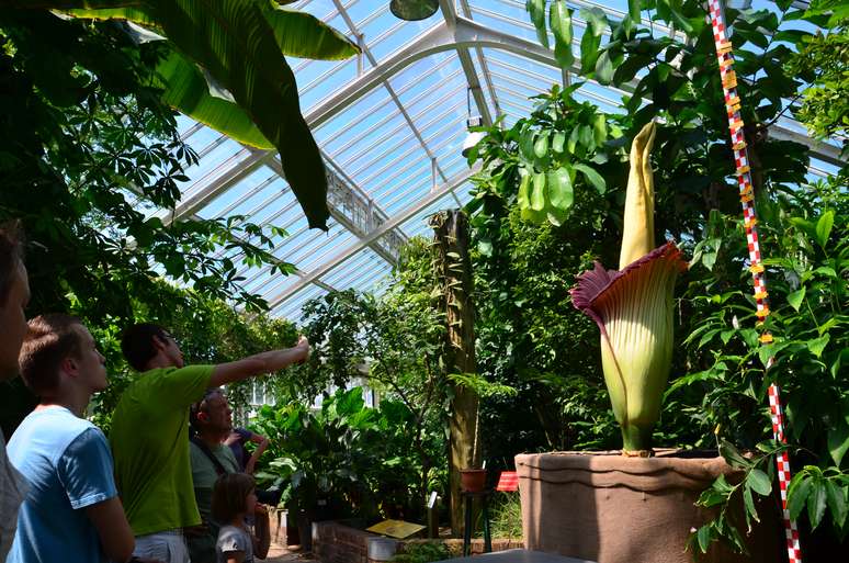 Bart De Vuyst, 19 anos, estudante e voluntário do Jardim Botânico Nacional da Bélgica, explica detalhes sobre a flor-cadáver a visitantes
