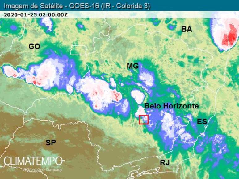 Por volta das 22 horas da sexta-feira, as imagens captadas pelo satélite GOES 16 ainda mostravam áreas de nuvens bastante carregadas avançando de Goiás e do oeste de Minas Gerais para o centro de Minas Gerais. Não se pode descartar que parte destas nuvens passem sobre a Grande Belo Horizonte. Ainda há condições para chuva moderada a forte.