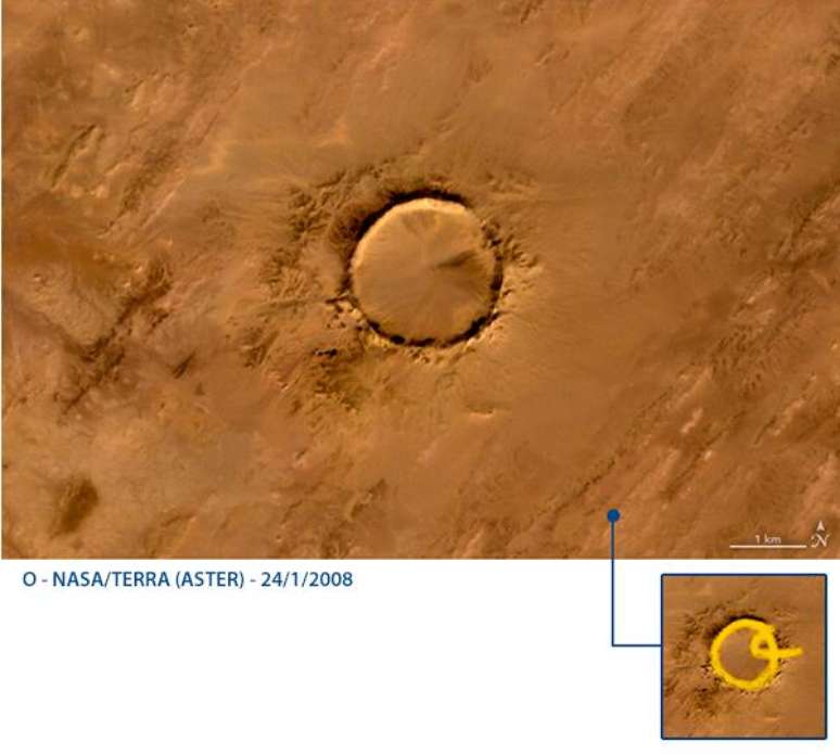 Letra O: cratera do meteorito Tenoumer, Mauritânia, noroeste da África
