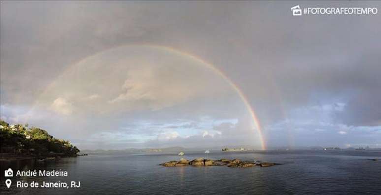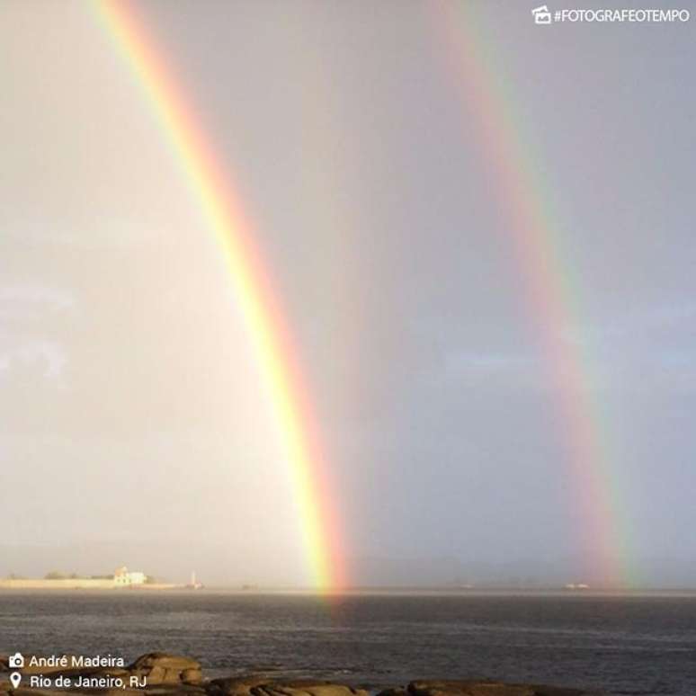 Foi assim que um dos meteorologistas da Climatempo que estava na cidade do Rio definiu o fantástico arco-íris que se formou na tarde de 3 de julho de 2017. Não um, mas dois arco-íris, o chamado arco-íris duplo. Era a primeira vez que ele via um duplo inteiro, daquele jeito! E que estreia! Eles coloriram aquela tarde gelada e nebulosa na baía da Guanabara.