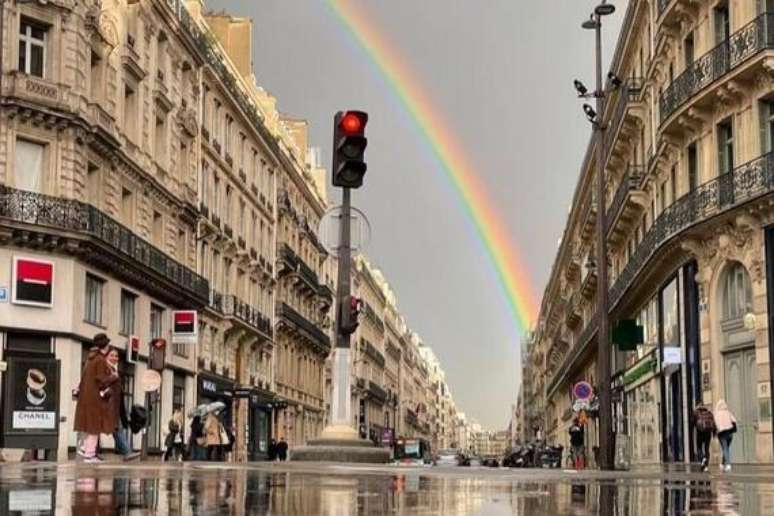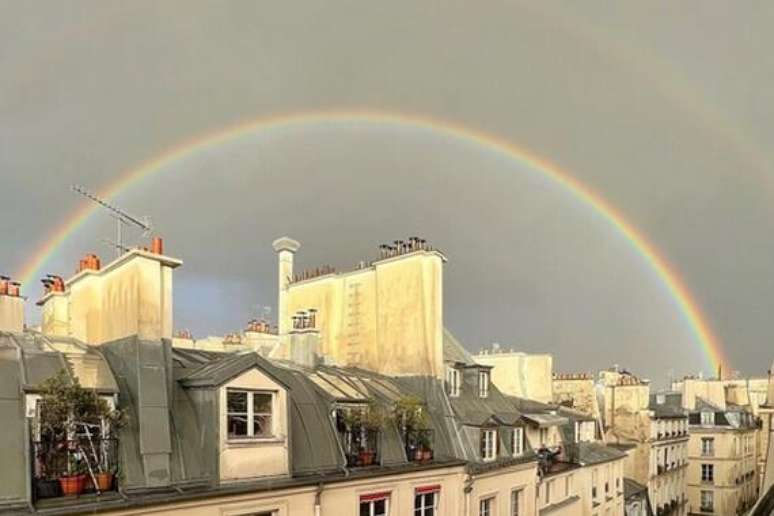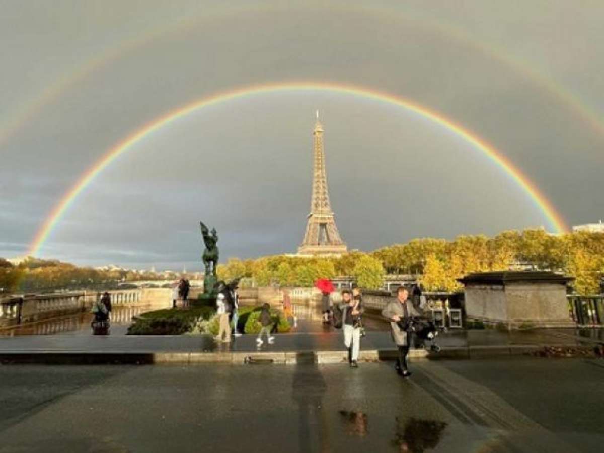 Arco-íris duplo emoldura Torre Eiffel e surpreende em Paris