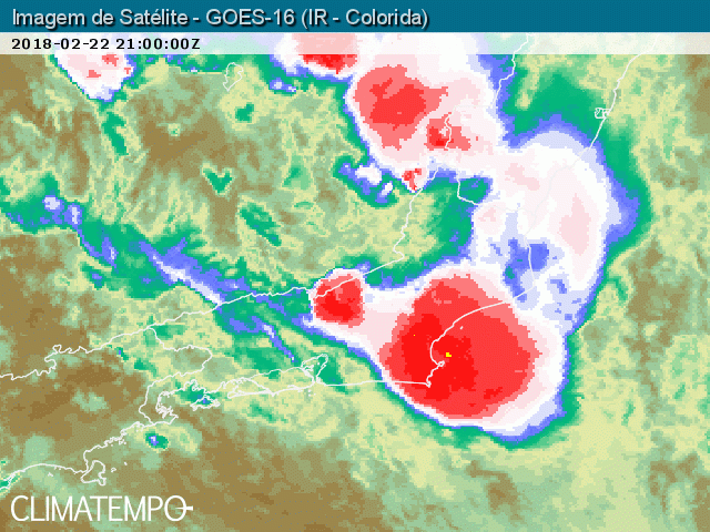 As imagens captadas pelo satélite meteorológico GOES 16 entre 18 horas e 21 horas do dia 22/2/18 mostraram as nuvens muito carregadas que passaram pelo litoral norte e pelo Norte Fluminense indo para o Espírito Santo e para o mar, mas outros aglomerados de nuvens começaram a se desenvolver no litoral da cidade do Rio e na região entre Angra dos Reis e a Marambaia. Estes novos núcleos tendem a avançar para a cidade do Rio.