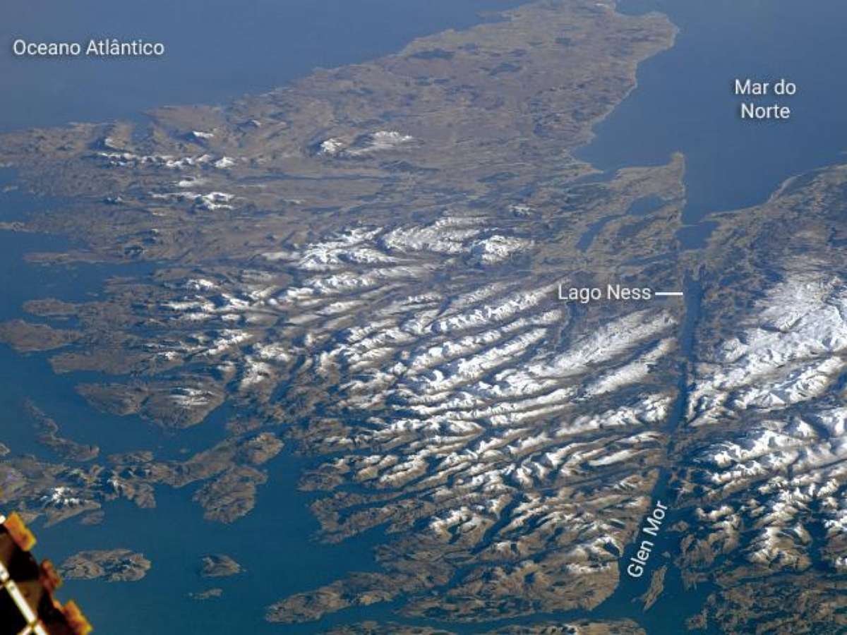 Um astronauta, a bordo da Estação Espacial Internacional, capturou uma rara fotografia das Terras Altas, zona montanhosa do Norte da Escócia. A imagem é inusitada porque o céu da região está quase sempre encoberto por muita nebulosidade, o que impede que sejam feitas imagens panorâmicas do local, principalmente durante o inverno (quando a foto foi tirada).
