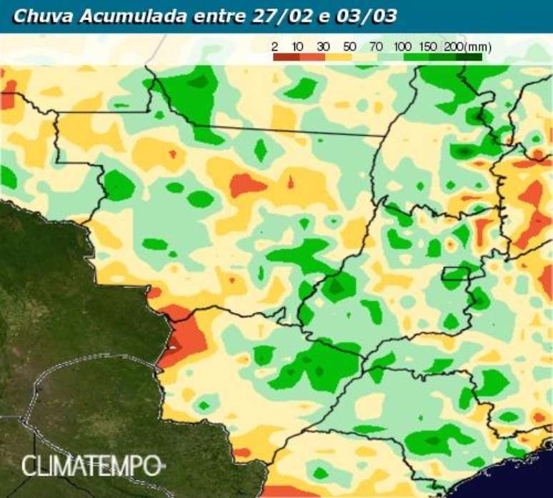 Até o fim de semana, a chuva s espalha pela maior parte da Região. A chuva continua mais concentrada entre Mato Grosso e Goiás.