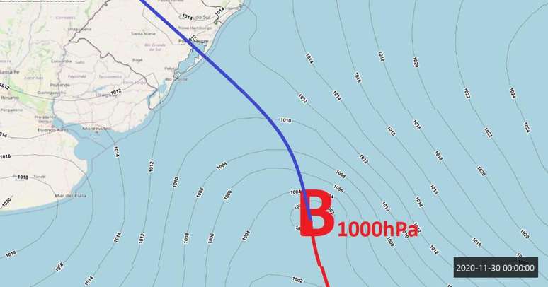 Ciclone extratropical irá se formar na costa do Sul do Brasil