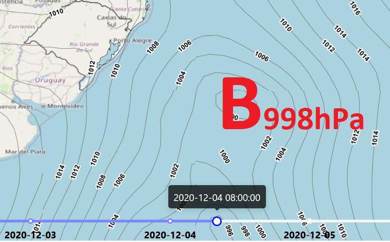 Uma área de baixa pressão atua sobre o Sul do Brasil nos próximos e dá origem a um ciclone extratropical próximo ao litoral da Região Sul. A partir de quinta-feira (03) esse ciclone avança em direção ao oceano e provoca vento intenso no Sul e também no litoral de São Paulo e do Rio de Janeiro.