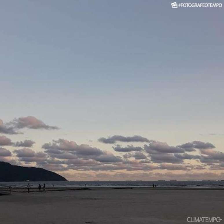 Todo o litoral de São Paulo tem uma terça-feira com muitas nuvens, mas com períodos de sol no decorrer do dia. Não há previsão de chuva, mas o céu pode ficar todo nublado especialmente no começo da manhã e perto do fim da tarde.