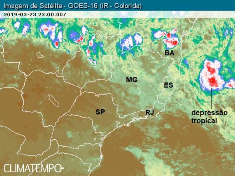 É preciso esclarecer que a maior instabilidade, as áreas de chuva mais fortes e os ventos mais fortes vão ficar sobre o mar. Mas independente da intensificação desta baixa pressão atmosférica, a circulação de ventos em diversos níveis da atmosfera vai forçar a concentração de umidade e calor sobre o norte e leste de Minas Gerais, Bahia e Espírito Santo neste fim de semana, 23 e 24 de março. Por isso, nuvens carregadas já atuam nestas áreas e vão continuar atuando nos próximos dias. Há risco de raios e de chuva forte.