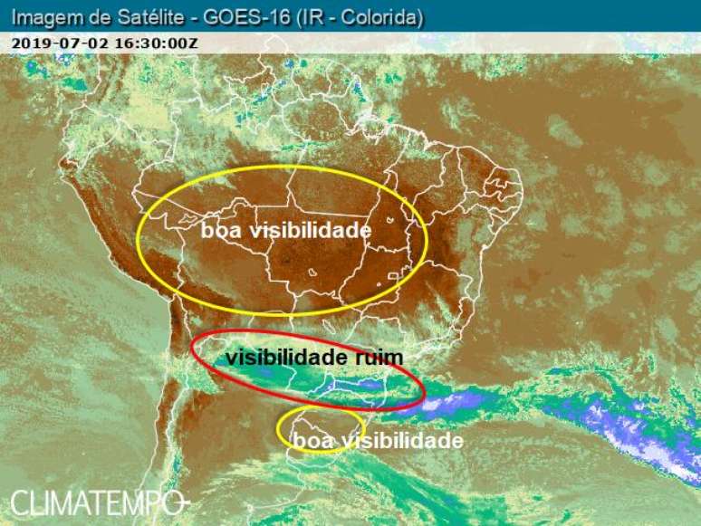 Nebulosidade e visibilidade do eclipse solar total de 2/7/2019 no Brasil