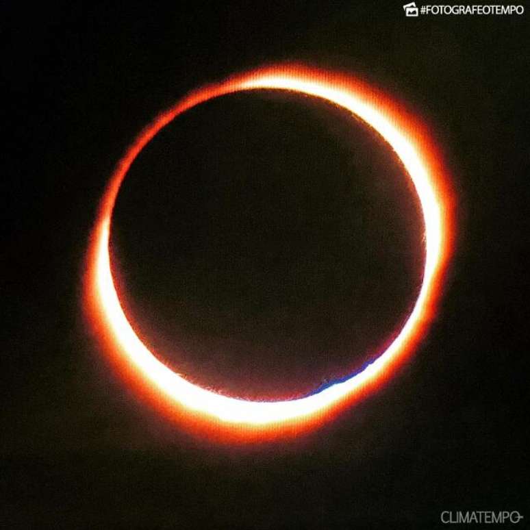 Na faixa com rosa mais escuro, em um determinado momento o disco solar ficou praticamente todo escurecido pela sombra da lua, mas deixando ver uma borda iluminada
