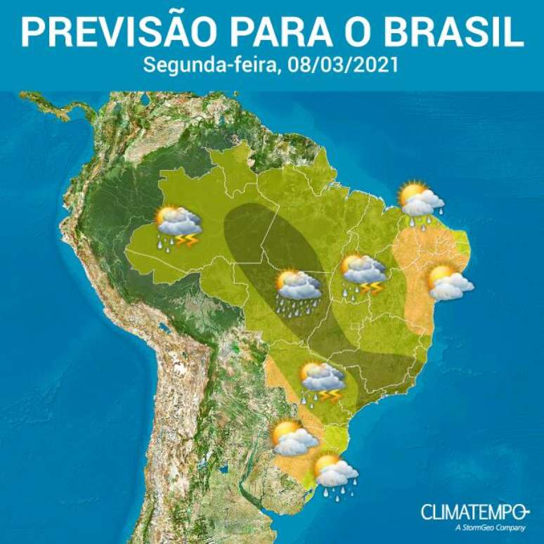 Previsão do tempo para 8/3/2021 - segunda-feira
