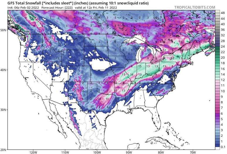 Landon, atuará sobre os EUA, agora na maior parte do território, desde áreas centrais até o nordeste americano. Há previsão de nevascas fortíssimas cobrindo uma extensa área do país até o final desta semana, com acumulados de neve entre 12 e 53 cm.