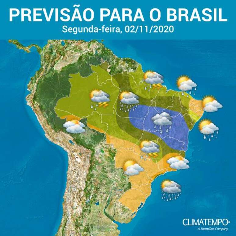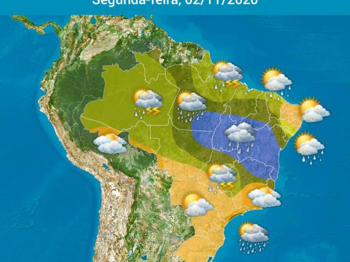 Confira a previsão do tempo para todo o Brasil nesta segunda-feira.