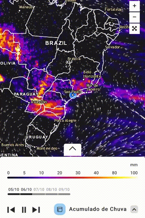 Os ventos que sopram do mar e as instabilidades nos diferentes níveis da atmosfera vão favorecer o aumento das nuvens carregadas já na quinta-feira(07). Com isso, o fim desta semana deve ser marcado por predomínio de muitas nuvens, com vários períodos de chuva e temperaturas baixas. Os volumes mais expressivos serão registrados entre quinta(07) e domingo(10).