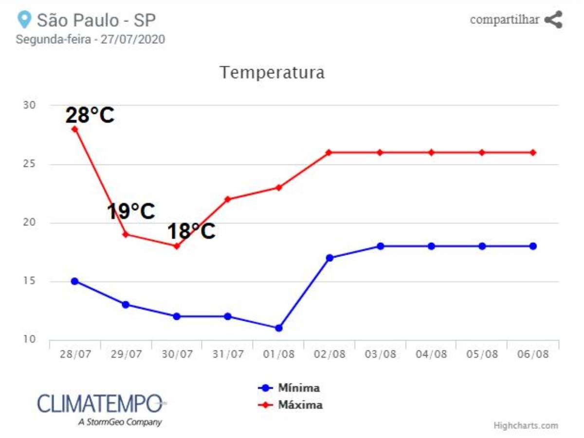 Temperatura em São Paulo no fim de julho de 2020