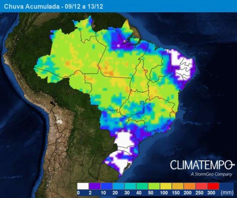 Figura: Previsão de acumulados de chuva entre os dias 09/12/2021 e 13/12/2021