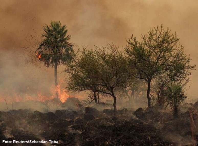 Os incêndios em áreas do norte da Argentina ocorrem desde meados de fevereiro e ganharam força neste fim de semana na província de Corrientes.
