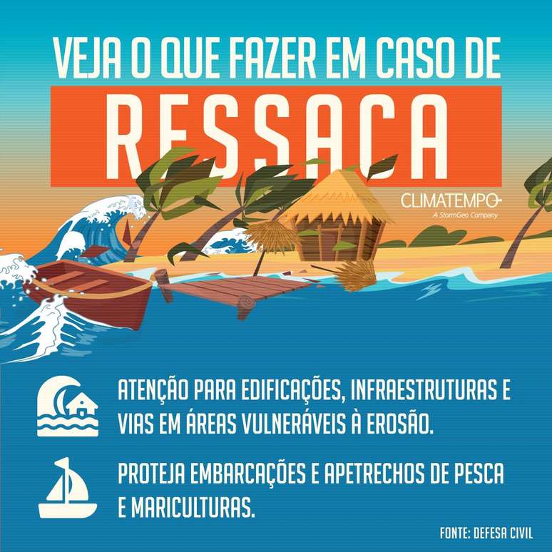Além da agitação marítima, há condições para grandes volumes de chuva nestas Regiões. Fique atento ao site ao longo dos próximos dias.