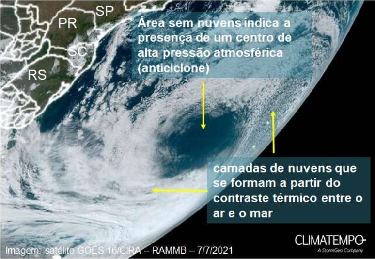 Região anticiclônica tem pouca ou nenhuma nebulosidade