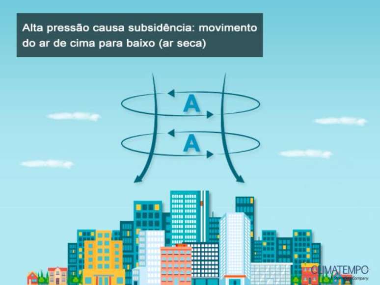 Alta pressão atmosférica causa a subsidência, que é o movimento do ar de cima para baixo