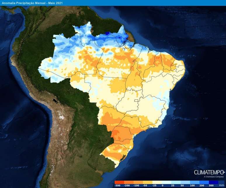Em maio, as configurações oceânicas continuam não favoráveis à passagem de frentes frias. Por isso, a chuva deve ser menos frequente, e deve acumular volumes abaixo da média histórica. As temperaturas caem, como é comum nesta época do ano, mas faz menos frio que o costume.