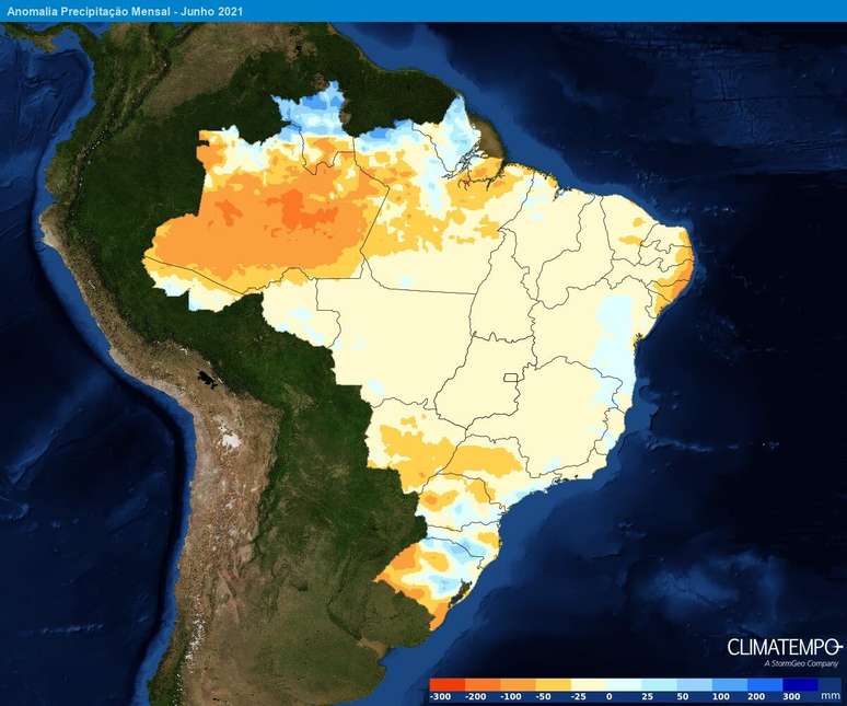 Em junho, toda faixa norte da Região continuará com volumes de chuva acima da média histórica e temperaturas mais amenas. As demais áreas têm previsão de chuva próxima à média.