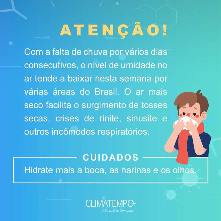 Em ambientes com baixa umidade relativa do ar e alta incidência de luz solar, não só a dispersão de poluentes é dificultada, piorando a qualidade do ar, mas algumas substâncias químicas interagem com a luz do sol e se convertem em ozônio, um gás extremamente tóxico próximo à superfície e que agrava quadros de irritação na pele e nas mucosas.