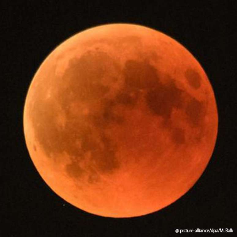 "Podemos ver a luz vermelha durante um eclipse pois ela recai sobre a Lua na sombra da Terra. Este mesmo efeito é o que dá a amanheceres e pores-do-sol uma cor laranja-avermelhada", diz um texto sobre o fenômeno divulgado no site da Nasa. A intensidade da cor depende da quantidade de umidade, poeira e outras partículas presentes na atmosfera.