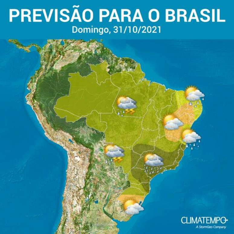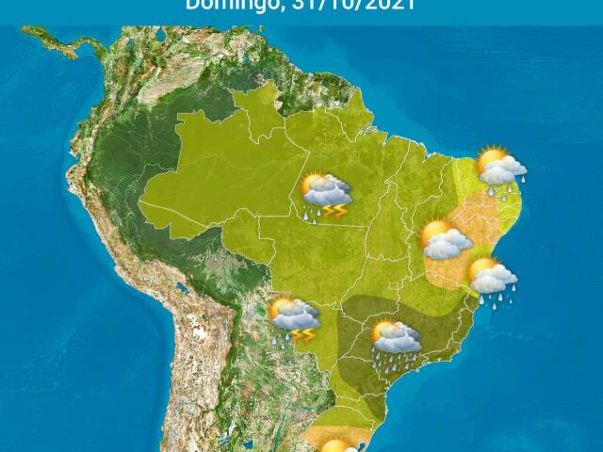Já sobre a Região Norte, como em pontos do AM, PA e RR, também há condições de pancadas logo no início do domingo.