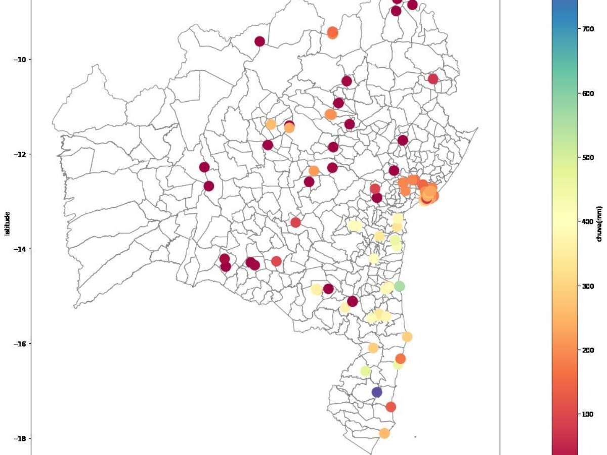 Itamaraju, no sul do estado, foi o município que mais choveu no Brasil, com 806mm de chuva, segundo os dados do Centro Nacional de Monitoramento e Alertas de Desastres Naturais (Cemaden). Este valor é mais de cinco vezes maior do que a média de dezembro (148,0mm).