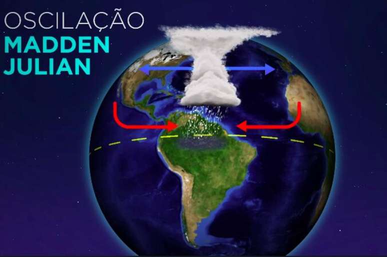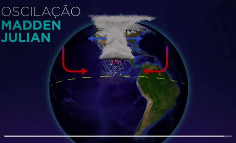 Uma das fases da Oscilação Madden Jullian. Fonte:Climatempo