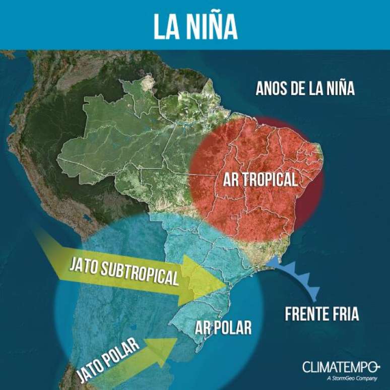 Como se comporta o fenômeno La Niña no verão.Fonte: La Niña