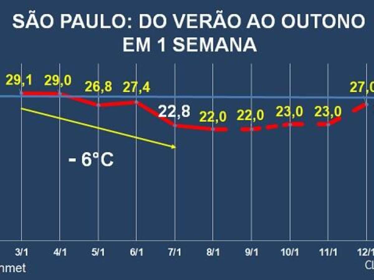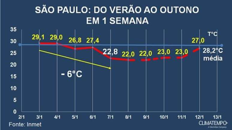 Entre os dias 3 e 7 de janeiro, a temperatura máxima baixou cerca de 6,3°C. A máxima no dia 3 foi de 29,1°C, no Mirante de Santana, na zona norte da cidade de São Paulo.