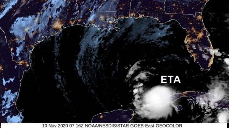Pode haver algum fortalecimento ainda nesta terça-feira, mas sem chegar a furacão. Eta deve perder força gradualmente .