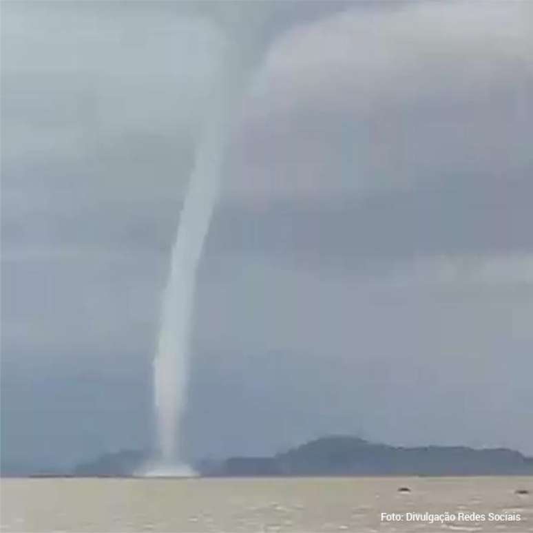Imagem divulgada em Redes Sociais da tromba d'água que se formou nesta terça-feira,