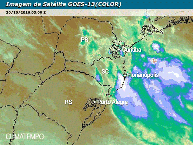 As nuvens carregadas saíram do Rio Grande do Sul e finalmente o sol reapareceu por lá, mas Santa Catarina e Paraná ainda estão sujeitos a chuva forte no decorrer desta quinta-feira. As pancadas podem ser fortes, com ventos fortes e risco de granizo.