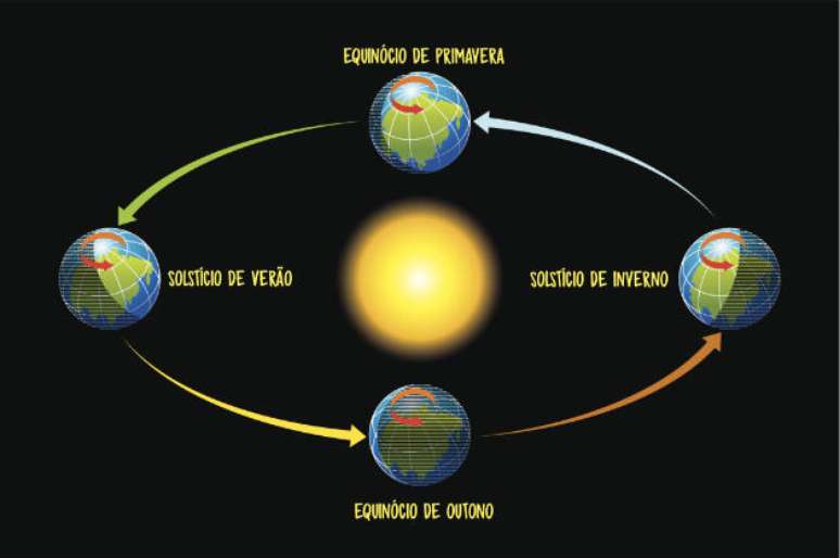As estações variam conforme a exposição aos raios solares, ou seja, de acordo com o movimento orbital da Terra em relação ao Sol. Por esse motivo, os hemisférios Sul e Norte sempre estarão com as estações opostas.