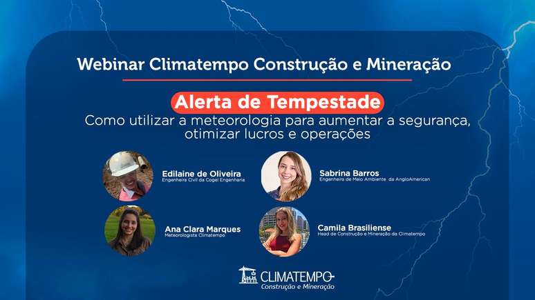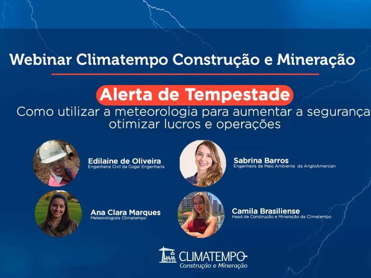 A Climatempo realizou, nesta quarta-feira, 30 de março, o primeiro evento voltado para os setores de construção e mineração. O Webinar, 100% online e gratuito, contou com a presença de um time de quatro mulheres que abordaram temas relevantes para os setores. Parceiros como a Anglo American e Cogel Construtora, empresas referência em suas áreas de atuação, estiveram presentes na noite desta quarta-feira.