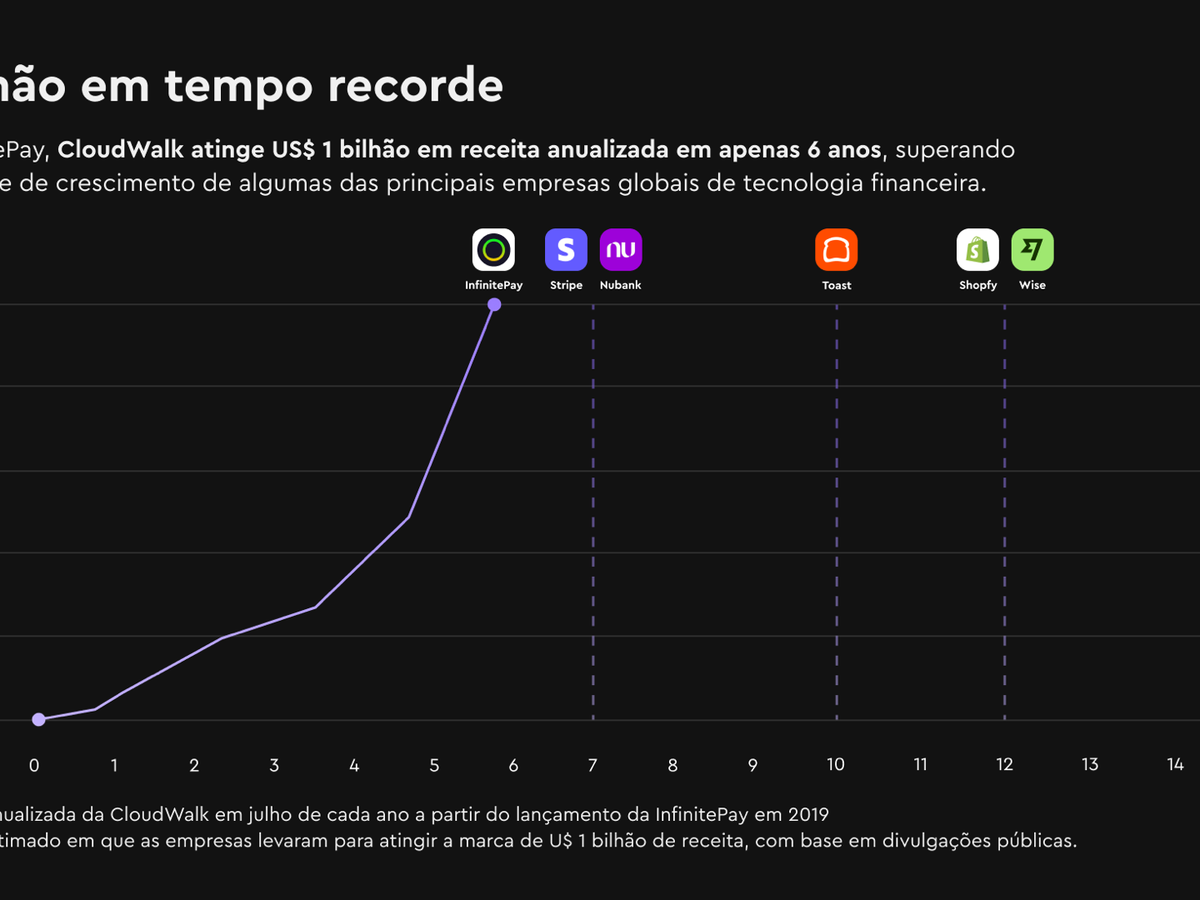 A ascensão da CloudWalk é rara mesmo entre as principais startups globais: de US$ 2 milhões em receita anualizada em 2019 para mais de US$ 1 bilhão em 2025 - um salto de 600 vezes em seis anos. E, diferentemente de muitas histórias de hiper crescimento, essa é sustentada por lucro. Apenas no primeiro semestre de 2025, a companhia gerou R$ 2,2 bilhões em receita líquida e R$ 214 milhões em lucro líquido.