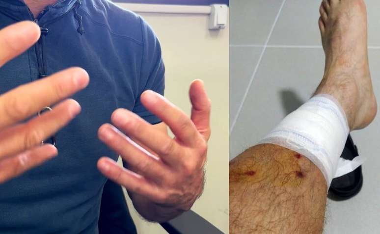 O episódio de agressão aconteceu por volta das 18h30 desta segunda-feira. O homem foi socorrido com um ferimento na perna. Um vídeo, feito por ele mesmo, mostra a perna com sangue.
