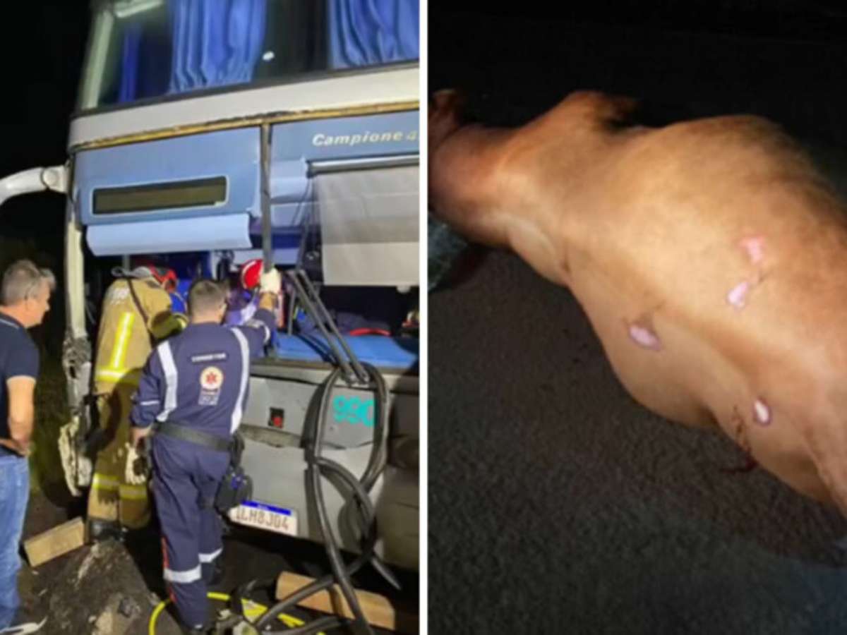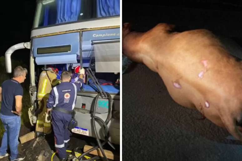 Colisão de ônibus com touro na BR-287 deixa dois passageiros feridos