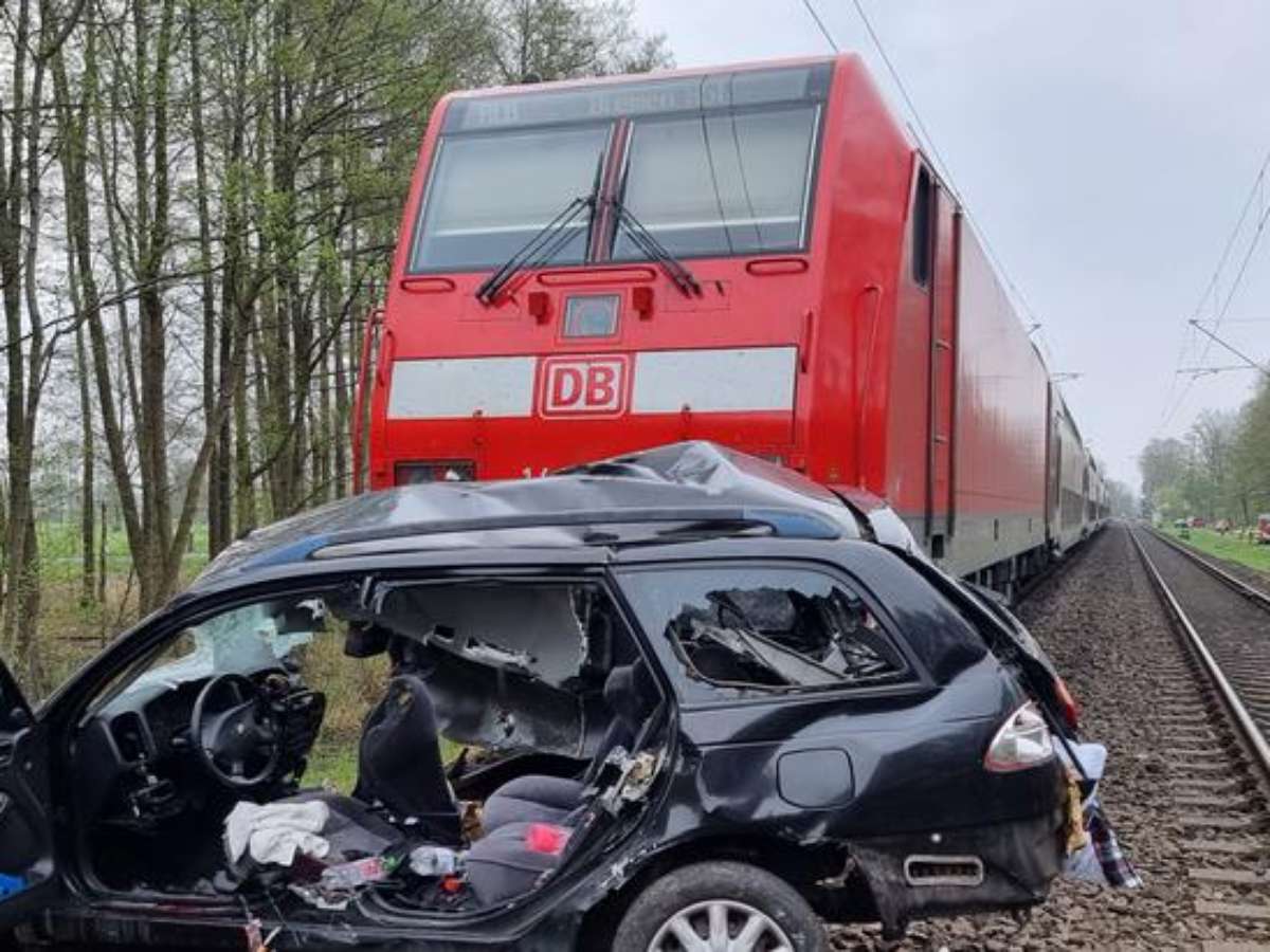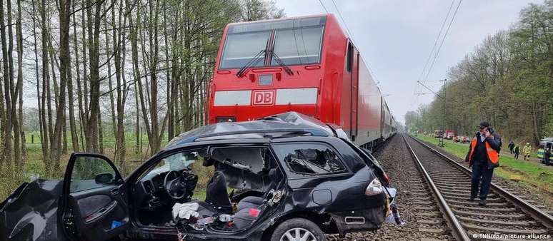 Segundo uma porta-voz da polícia, um trem regional da empresa ferroviária alemã Deutsche Bahn colidiu contra o carro "a toda velocidade" depois que o veículo invadiu os trilhos.