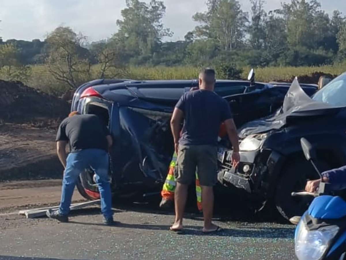 Na sequência, o veículo capotou e acabou colidindo frontalmente com a caminhonete.
