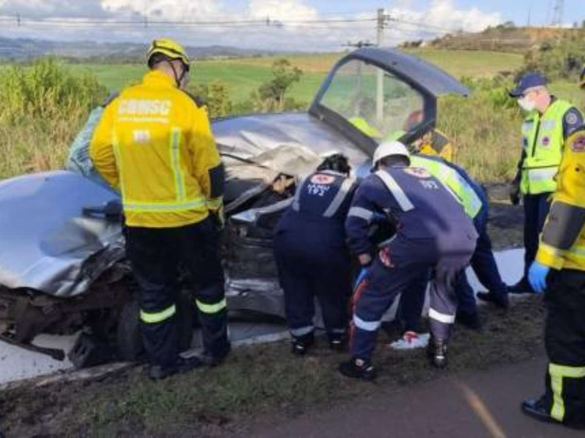 A vítima ficou presa às ferragens e não resistiu aos ferimentos. No mesmo veículo, uma mulher sofreu lesões e foi encaminhada ao Hospital São Paulo, em Xanxerê, para atendimento médico. Um menor de idade que também estava no carro conseguiu sair ileso.