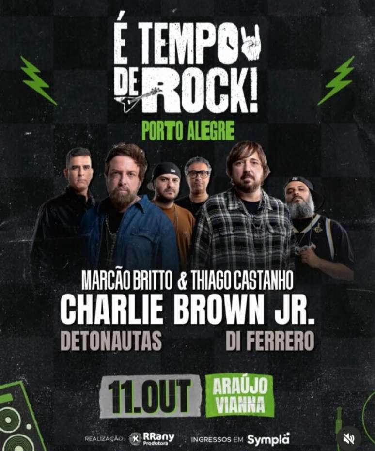 Porto Alegre vai respirar rock nacional em outubro! No dia 11, o Auditório Araújo Vianna será palco da primeira edição do festival "É Tempo de Rock", que promete emocionar fãs de todas as idades com um line-up de peso. Três nomes consagrados do rock dos anos 2000 sobem ao palco: Marcão Britto & Thiago Castanho, relembrando a energia e a mensagem do Charlie Brown Jr.; os Detonautas, com seus hinos cheios de atitude; e Di Ferrero, com uma performance que passeia entre a carreira solo e os sucessos do NX Zero. Será uma noite para cantar alto, relembrar momentos marcantes e celebrar a música que atravessa gerações.